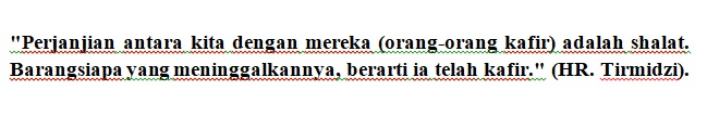 Dengan meninggalkan sholat, seseorang berisiko dianggap sebagai orang kafir. Hal ini telah dijelaskan dalam HR. Tirmidzi.