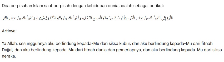 Doa perpisahan Islam juga dapat dibaca pada saat kita berpisah dengan kehidupan dunia. Doa ini dapat kita baca untuk memohon ampunan atas dosa-dosa yang telah kita perbuat dan memohon agar dapat dikumpulkan kembali dengan orang-orang terkasih di akhirat. Namun sayangnya masih banyak umat Islam yang belum memahaminya.