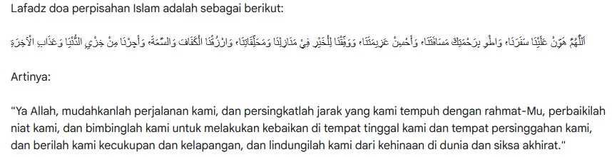 Doa perpisahan Islam dapat dibaca pada saat kita berpisah dengan orang lain. Baik itu teman, keluarga, pasangan, maupun orang yang baru kita kenal. Doa ini dapat kita baca untuk memohon perlindungan dan keselamatan bagi orang yang kita tinggalkan.